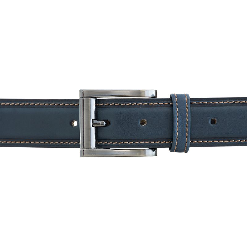 Cinturón formal para hombre fabricado en cuero azul de primera calidad. Es un modelo versátil que puede ser el complemento ideal para tus looks formales o casuales. ¡Es el complemento perfecto!
