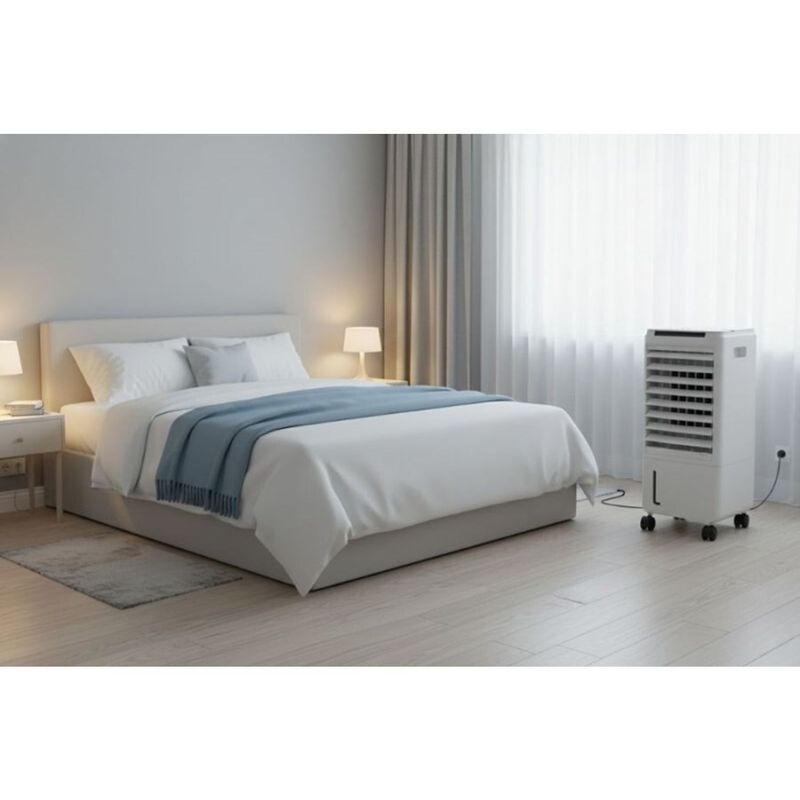 CLIMATIZADOR PORTATIL BL205DLR 7L 80W Función de enfriamiento/humidificación/purificación 3 velocidades: baja/media/alta 3 modos: tranquilo/normal/natural 2 depósitos de hielo 4 ruedas universales Diseño de riego superior Control remoto, pantalla LED y pantallatáctil # Temporizador de 7 h Potencia de refrigeración: 80 W Capacidad del depósito de agua: 7,0 L Prueba de ruido: =65 dB Certificados CE/EMC/GS/ERP/RoHS/ETL Garantía 12 meses Origen China