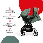 Diseño ultracompacto, plegado fácil con una sola mano y máxima comodidad para tu bebé. Con asiento acolchado, respaldo reclinable, cinturón de 5 puntos y ruedas con frenos, cada salida será segura y placentera.
