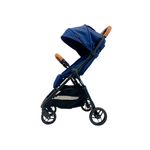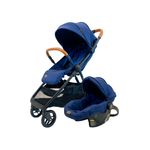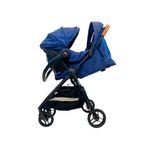 Con asiento tapizado de tela soft, y un posapiés y respaldo reclinables, cuenta también con una barra frontal completamente removible para mayor comodidad. y una capota ajustable y expandible.