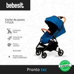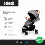 El cochecito de paseo T-Flex cuenta un manillar removible y apoyapiés regulable en 4 posiciones diferentes.