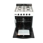 Este modelo incluye encendido eléctrico en hornallas, lo que facilita el uso diario sin necesidad de fósforos. El horno incorpora sistema Easy Cleaning, que simplifica la limpieza posterior al uso, y una puerta con doble cristal que mejora la eficiencia térmica y la seguridad.