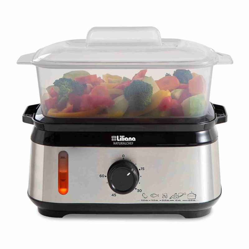 Vaporera NaturalChef de Liliana es la solución perfecta para una alimentación sana y natural! Con su diseño práctico y funcional, esta vaporera te permite cocinar al vapor, manteniendo las propiedades y sabores de los alimentos mientras elimina grasas y toxinas. Además, su cuerpo de acero inoxidable y sus 3 bandejas apilables la convierten en una herramienta indispensable para preparar comidas saludables y deliciosas. Este modelo está diseñado para brindarte un rendimiento óptimo, gracias a sus 3 bandejas apilables que ofrecen una capacidad total de 9 litros. Su contenedor accesorio para cocinar arroz y legumbres, su timer con aviso sonoro y su visor de nivel de agua garantizan una cocción precisa y sin complicaciones.