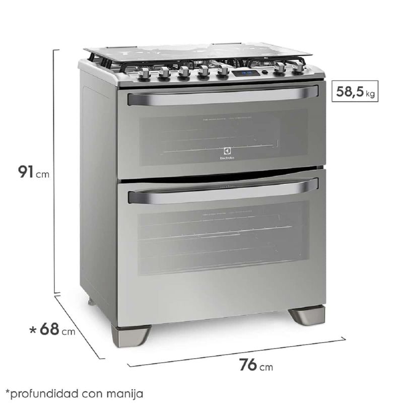 Descubre una nueva dimensión en la cocina con la Cocina Doble Horno Electrolux M-Gas Inox 76Dxr. Potencia, versatilidad y elegancia se unen para llevar tus habilidades culinarias al siguiente nivel.