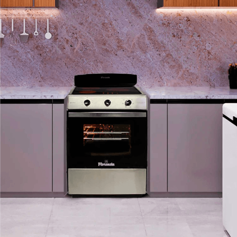 La cocina eléctrica Florencia 8638G combina funcionalidad y estética con una superficie vitrocerámica de fácil limpieza y terminaciones en acero. Su diseño compacto de 85 cm de alto, 56 cm de ancho y 60 cm de profundidad la convierte en una excelente opción para cocinas modernas o espacios reducidos. La puerta del horno con doble cristal mejora la eficiencia térmica y la seguridad durante el uso.