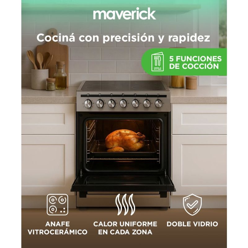 El horno distribuye el calor de manera uniforme en todo el interior, logrando cocciones más parejas y eficientes. Ideal para preparaciones que requieren temperatura estable como pastelería, carnes o vegetales asados.