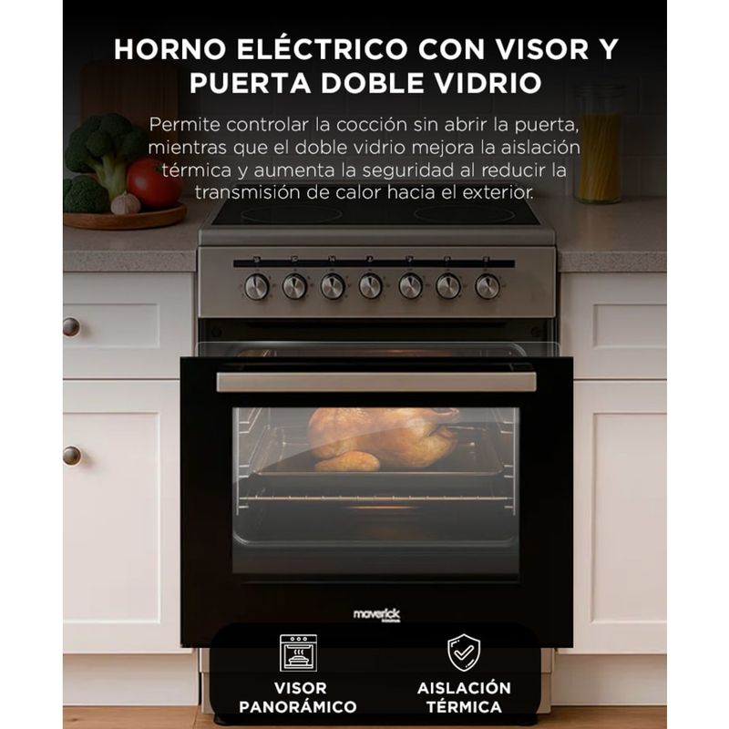 El frente con vidrio de seguridad ayuda a mantener estable el calor interno y reduce la transmisión térmica hacia el exterior, mejorando la eficiencia del horno y la seguridad durante su uso.