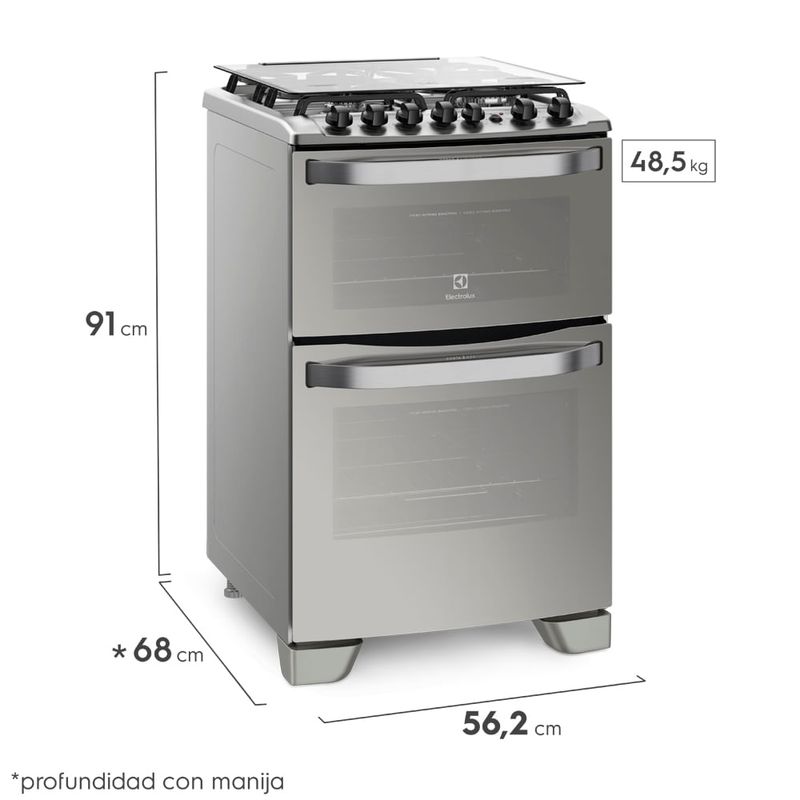 La cocina doble horno 56DXQ está diseñada para quienes buscan calidad y eficiencia al preparar sus comidas. Con dos hornos independientes, uno eléctrico y otro a gas, te permite cocinar diferentes platos al mismo tiempo, sin comprometer la calidad. ¿Te gustaría optimizar tus tiempos en la cocina y elevar tus preparaciones?