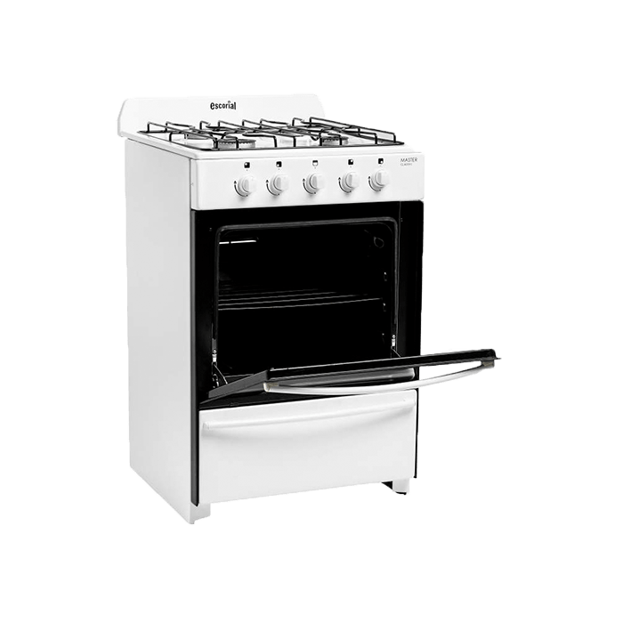 Diseño moderno y funcionalEsta cocina combina un diseño práctico con una estética moderna. Con un cuerpo blanco y laterales del mismo color, se complementa con una elegante puerta de horno en vidrio negro que aporta un toque sofisticado. Sus dimensiones de 93 cm de alto, 56 cm de ancho y 60 cm de profundidad, junto con un peso de 32 kg, la convierten en una opción robusta y adaptable a cualquier cocina familiar.Seguridad en la cocciónCuenta con 4 hornallas —tres medianas y una grande— equipadas con válvula de seguridad para un uso confiable. Los quemadores de aluminio con tapa esmaltada garantizan durabilidad y una distribución uniforme del calor. Funciona con gas natural.Horno eficiente y fácil de limpiarEl horno posee puerta de vidrio que permite visualizar la cocción sin necesidad de abrirla, y su interior está completamente enlozado en polvo electrostático, lo que facilita su limpieza. Incluye una reja esmaltada y una rejilla desmontable en plancha para mayor practicidad. Además, incorpora una manija de horno y de parrilla en acero pintado, y una asadera con cajón parrilla y puerta rebatible, ideal para cocinar y organizar con comodidad.Eficiencia energética garantizadaDiseñada con materiales de alta calidad y pensada para el uso cotidiano, esta cocina posee una calificación de eficiencia energética Clase A, lo que asegura un bajo consumo sin sacrificar rendimiento. Una opción ideal para quienes buscan confiabilidad, seguridad y estética en un solo producto.