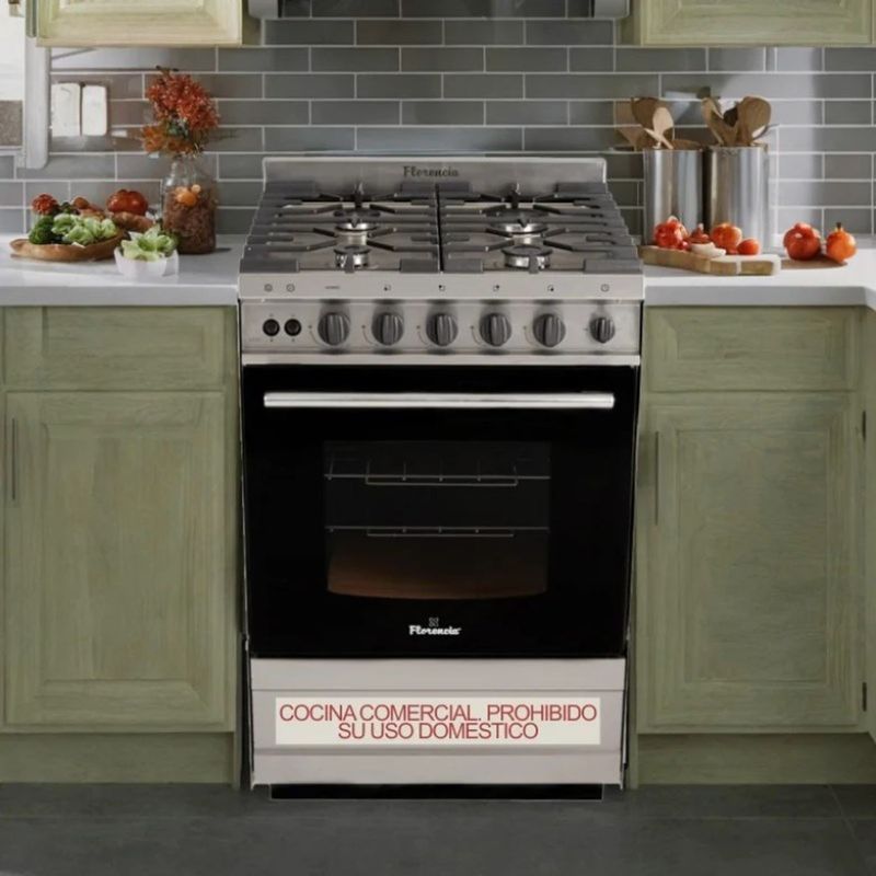 COCINA FLORENCIA 5838S INOXIDABLE 56CM -Diseño robusto -Mesada y Cuerpo completamente de AceroInoxidable de primera calidad -Válvulas de seguridad en horno y hornallas. -Piso de horno con ladrillos refractarios. -Luz en el horno. -Rejillas de fundicion antivuelco de fundición divididas en dos para hornalla -Encendido electrónico. -Timer -Puerta de horno con doble visor: con doble vidrio templado -Enlozado de horno easy clean. -Solo para uso comercial/gastronómico Dimensiones: -Ancho(cm):56 -Alto(cm):85 -Profundidad (cm):60 MODELO:5838S. -Garantía:12 Meses -Origen Argentina