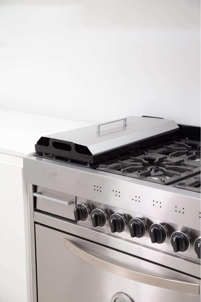 Incluye plancheta con tapa, espátula y carlitera, ampliando las posibilidades de cocción en un solo equipo. Cuenta con 6 hornallas, de las cuales 2 son triple corona, y un horno pizzero de gran capacidad con ladrillos refractarios.
