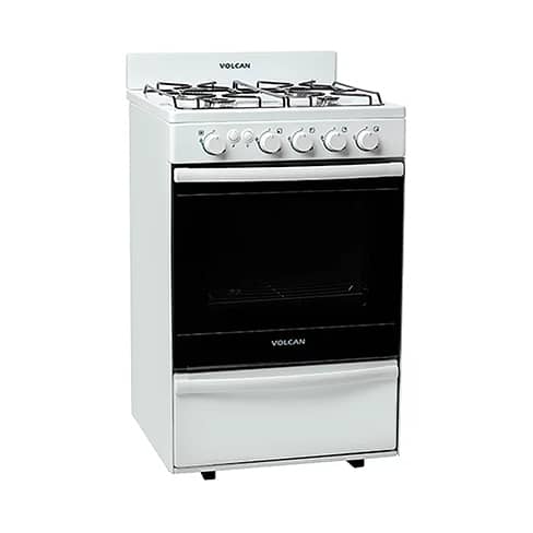 87643VM COCINA M-GAS 55CM BLANCA VOLCAN COCINA 87643V VOLCAN Cuatro quemadores de máxima potencia con tapas enlozadas de fácil limpieza. Termocupla de seguridad en todas las hornallas. Horno de fácil limpieza de gran capacidad con tres niveles de cocción y válvula de seguridad. Puerta de horno completamente desmontable para facilitar su limpieza. Cajón parrilla deslizable con puerta volcable. Con luz en el horno y encendido electrónico. Incluye 1 rejilla y 1 asadera en el horno, y 1 rejilla en el cajón parrilla