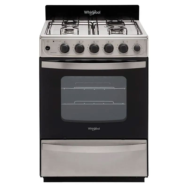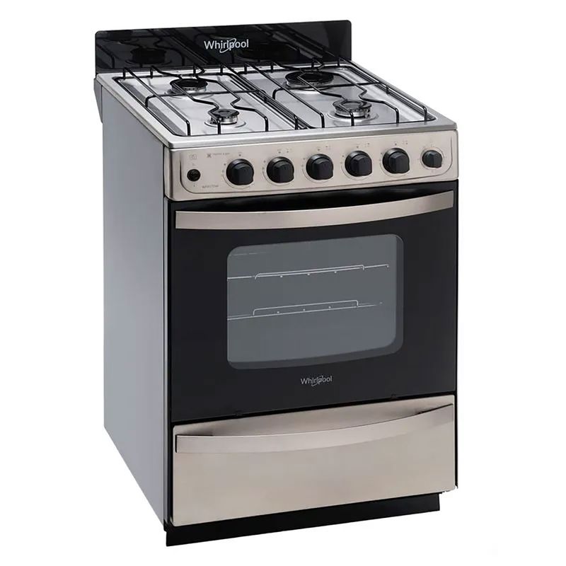 Cocina Whirlpool WFX57DW Inox M-Gas: ¡4 Hornallas, Grill a Gas y Cajón Parrilla Deslizable!