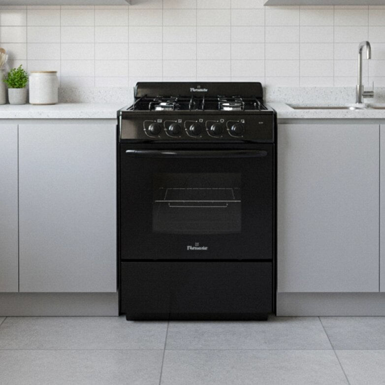 Florencia 5507 cocina a gas combina funcionalidad y estilo en un formato compacto de 56 cm de ancho, ideal para cocinas con espacio limitado. Su terminación en color negro le da un toque moderno y sobrio, mientras que las rejillas de alambre enlozado aseguran resistencia y fácil mantenimiento.