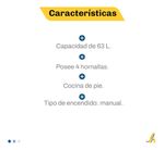 - Capacidad del horno de 63 L para mayor espacio de cocción.