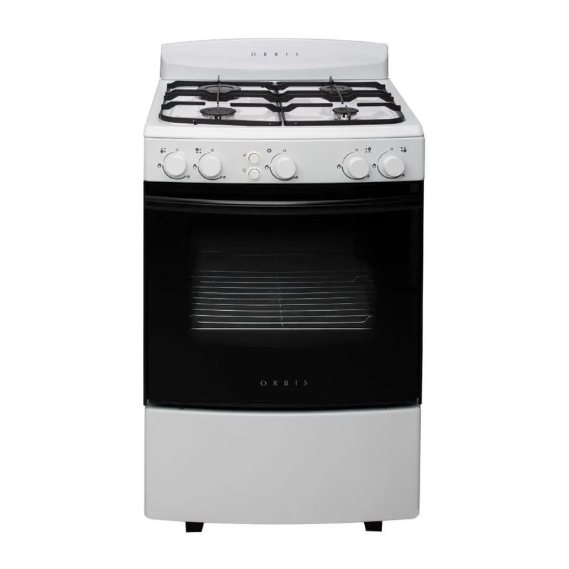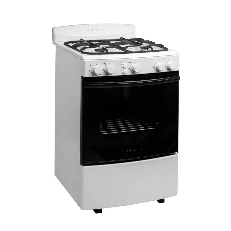 Cocina de 55 cm de frente curvo con luz y encendido electrónico. Tapa inferior fija.