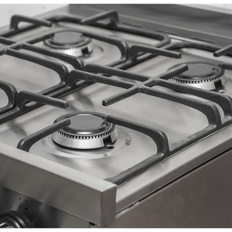 Diseño moderno y materiales de calidadLa Cocina Peabody 530 Gourmet en acero inoxidable ofrece una estética elegante y contemporánea, ideal para cocinas modernas. Su estructura robusta y acabados de alta calidad aseguran una larga vida útil, combinando durabilidad con un diseño que se destaca en cualquier ambiente.Rendimiento eficiente y funcionalidadEquipada con cuatro hornallas de alta eficiencia, permite cocinar múltiples preparaciones al mismo tiempo con un uso óptimo del gas. El horno espacioso con visor facilita el seguimiento de la cocción sin necesidad de abrir la puerta, manteniendo la temperatura estable y ahorrando energía.Adaptabilidad a distintos entornosEste modelo es multigas, lo que significa que puede funcionar tanto con gas natural como con gas envasado (GLP), adaptándose a diferentes instalaciones según la necesidad del usuario. Esta característica brinda flexibilidad y comodidad, ideal para hogares en zonas urbanas o rurales.Cocción segura y uniformeEl horno incluye un piso refractario que distribuye el calor de manera uniforme, logrando cocciones más parejas y precisas. Además, incorpora una válvula de seguridad que corta el gas automáticamente si la llama se apaga, ofreciendo mayor protección y tranquilidad en el uso diario.