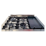 La Cocina Usman Carliplancha Mod 992 Multigas combina un estilo clásico con una estructura resistente, ideal para quienes buscan un equipo duradero y eficiente. Con 4 hornallas, bífera y tostadora, ofrece una gran versatilidad para preparar todo tipo de comidas, desde platos tradicionales hasta opciones más elaboradas. Materiales resistentes y de fácil mantenimiento Equipada con rejillas de fundición, quemadores de aluminio y mechero industrial, garantiza un alto rendimiento y resistencia al uso intensivo. Su mesada estampada facilita la limpieza, mientras que el interior de aluminio con piso de ladrillos refractarios asegura una distribución uniforme del calor, mejorando la cocción y reduciendo el consumo de gas. Control de temperatura y seguridad garantizada La puerta del horno cuenta con visor de vidrio templado y pirómetro incorporado, lo que permite monitorear la temperatura con precisión sin necesidad de abrir la puerta. Además, su válvula de seguridad en el horno corta automáticamente el gas si la llama se apaga, brindando un uso seguro y confiable para el hogar. Accesorios que suman practicidad Incluye una plancheta y una pinza tostadora que amplían aún más las posibilidades en la cocina, permitiendo asar, tostar o cocinar a la plancha con facilidad. La Cocina Usman Carliplancha es una opción completa para quienes valoran la funcionalidad, la seguridad y el rendimiento en su día a día.