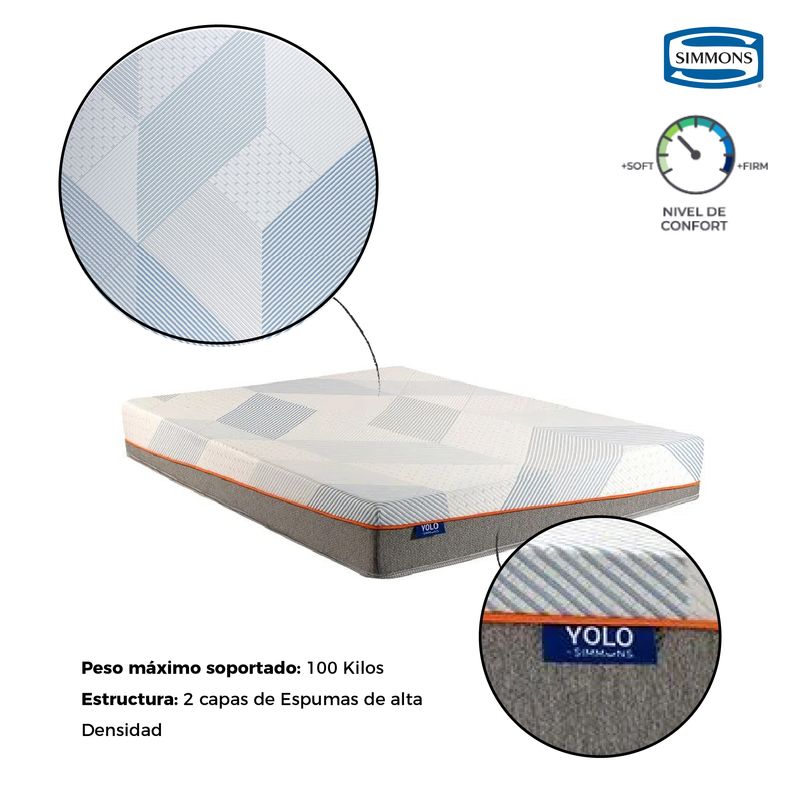 Combina un bloque uniforme de Espuma de Alta Densidad de 19 cm de altura que aporta soporte y firmeza, con una manta superior de Espuma Energy Foam de 3cm que es extremadamente suave y mullida y te hará sentir una sensación de confort única.