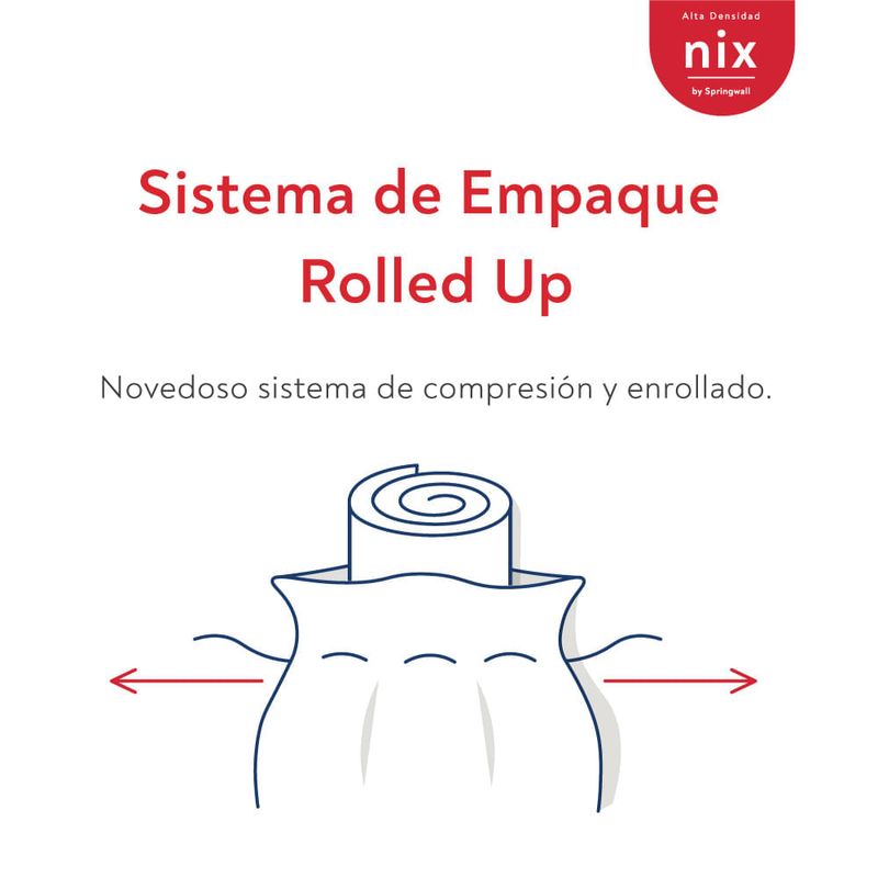¡Descubre el colchón Springwall NIX, diseñado para aquellos que buscan una sensación extra firme! Este colchón es la elección ideal para quienes valoran la calidad y el confort en su dormitorio. Confeccionado con espuma de alta densidad de última generación, el NIX garantiza una experiencia de sueño inigualable. Su diseño innovador incorpora la tecnología One Side, eliminando la necesidad de rotar el colchón y ofreciendo una conveniencia excepcional. La elegancia se combina con la funcionalidad en el diseño del borde y la tapa, que lucen un atractivo color blanco y un tejido de punto suave y elástico. Además, todos los componentes son hipoalergénicos, proporcionando un ambiente seguro y saludable para tu descanso. Como un toque de practicidad adicional, cuenta con una funda desmontable que facilita su limpieza y mantenimiento, permitiéndote mantener tu colchón fresco y en óptimas condiciones por más tiempo. El corazón del colchón está formado por una espuma de alta densidad de 30 kg/m3, que brinda un soporte firme y confortable durante toda la noche. Empaquetado de manera conveniente mediante el sistema Rolled Up, Con una altura de 23 cm y una capacidad de soporte de hasta 110 kg por lado, el colchón NIX combina belleza, calidad y funcionalidad en un solo producto. - Altura Colchón: 23 cm. - Cuerpo: Espuma de alta densidad de 30 kg/m3. - Sistema de Empaque Rolled Up, sistema de compresión y enrollado. - Sensación: Firme. - Tapa confeccionada con Tejido de Punto. Terminación de tapa con sistema tipo funda. Completely Smooth Cover®. Ausencia de costura de matelasseado ayudando al cuerpo a reposar en una superficie lisa y asegurando un mayor descanso. - Sistema One Side: novedosa tecnología interna que permite no rotar el colchón. - Peso que soporta por lado: 110 kg. - * Nota: el colchón se enrolla con un sistema especial en fábrica. No puede volver a comprimirse una vez abierto el envoltorio.