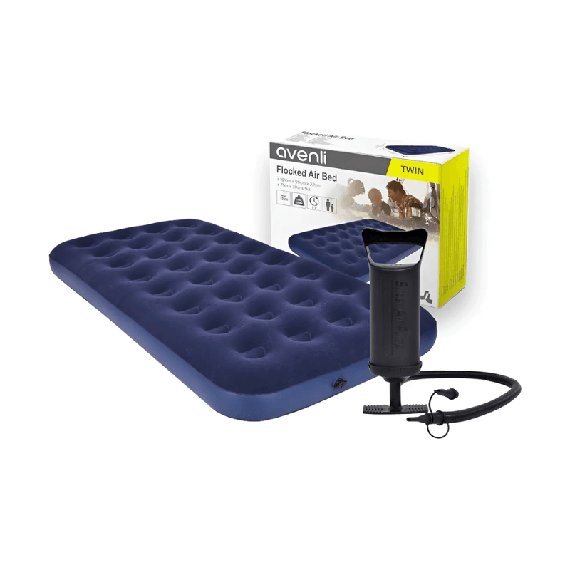 Viví la comodidad en cualquier lugar con el Colchón Inflable Avenli con Inflador. Compacto, resistente y práctico, es perfecto para invitados, viajes y camping. Su superficie flocada aporta suavidad al descansar, mientras que su diseño interno brinda firmeza y estabilidad. Incluye inflador para un armado rápido y sin complicaciones.