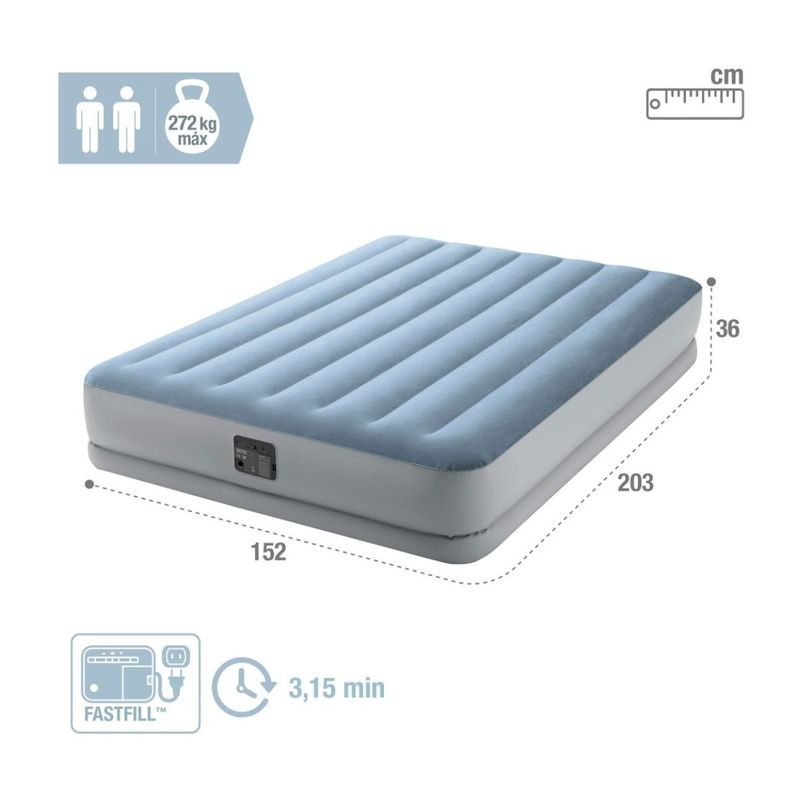 Fácil inflado y desinflado: incorpora inflador eléctrico para inflar o desinflar fácil y rápidamente el colchón, en aproximadamente 3,15 minutos. También se puede inflar con un inflador manual o eléctrico externo (no incluido).