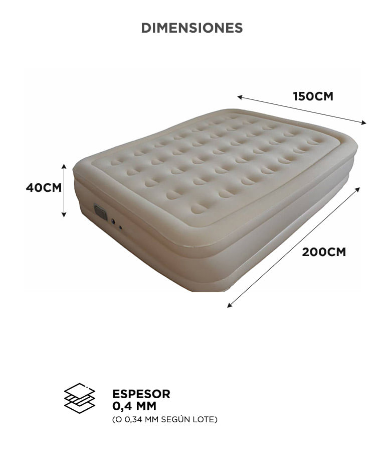 Dimensiones: 200 × 150 × 40 cm