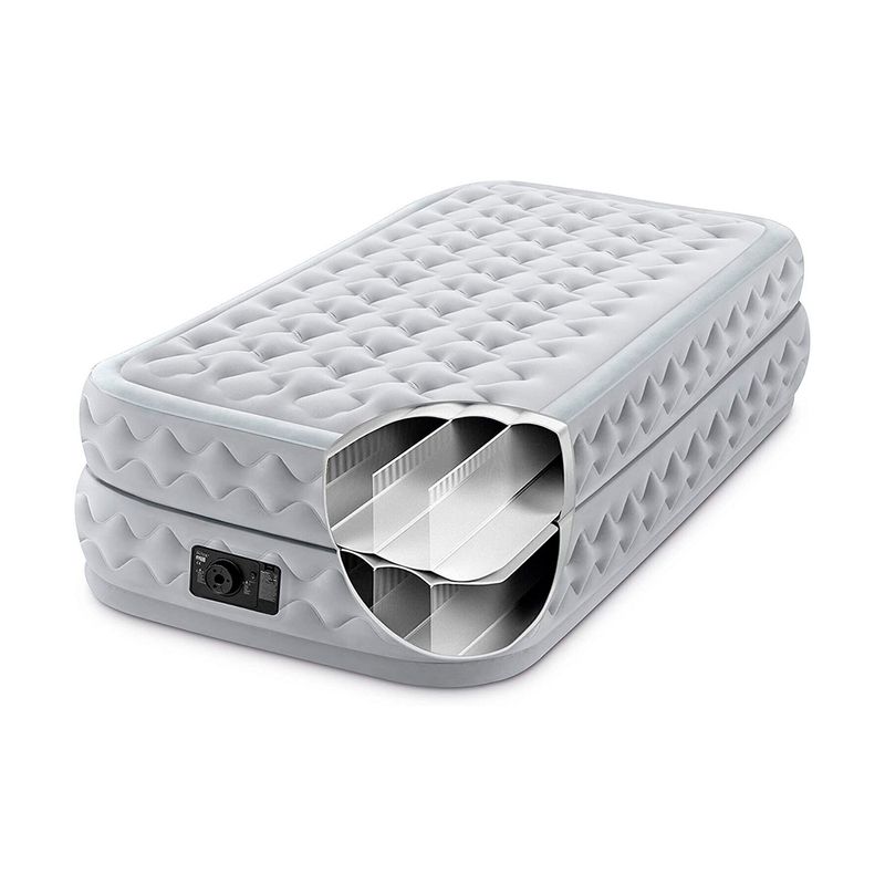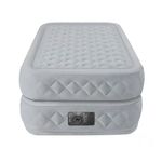Este colchón hinchable forma parte de la línea Dura-Beam Deluxe y, dentro de ella, se encuentra el modelo Supreme Air-Flow, diseñado para una experiencia de sueño excepcional, ideal para dos personas. Destaca por su altura elevada, similar a la de los colchones tradicionales, facilitando el acceso y la salida, y por su doble construcción que garantiza una mayor estabilidad y comodidad, permitiendo ajustar las sábanas y evitando que se desplacen durante el descanso. La superficie del colchón, formada por pequeñas bolsas de aire interconectadas, distribuye el peso de manera suave y uniforme para un confort superior. Además, su diseño acanalado horizontal mejora la aireación y estabilidad, asegurando un descanso cómodo y reparador. Fabricado con PVC laminado y acabado flocado, este colchón incorpora una formulación molecular SuperStrong para mayor resistencia a pinchazos. Gracias al potente hinchador eléctrico incorporado podrás inflar y desinflar el colchón en tan solo unos minutos y sin ningún esfuerzo.