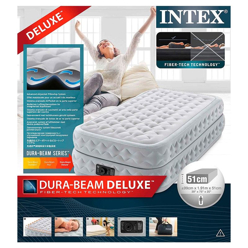 ¿Tienes invitados en casa con frecuencia? ¿Tus hijos suelen traer amigos a dormir? ¿En las fiestas navideñas siempre se queda algún familiar a pasar unos días? Sea cual sea el motivo por el que necesites una cama supletoria, deja de preocuparte porque una habitación de invitados te quita mucho sitio en casa. Tener una cama hinchable a mano siempre es una buena opción. Por eso, en INTEX encontrarás una amplia variedad de camas hinchables con diferentes características pensadas para adaptarse a tus necesidades y mejorar tu descanso y el de tus invitados cuando necesites una cama adicional temporalmente. Todos las camas están fabricadas con construcción interior Fiber-Tech, la tecnología exclusiva de INTEX que consigue que los colchones sean más estables, firmes y cómodos, ajustándose perfectamente a la anatomía de quien los usa. Además, se someten a estrictos controles de calidad, como al Test Air Lock, que garantiza una calidad y resistencia superior. Con las camas de aire INTEX podrás disponer de una cama siempre que lo necesites, pero no tendrás por qué perder espacio en tu vivienda con una habitación dedicada a los invitados. Simplemente, cuando la necesites solo tendrás que sacarla de la caja, colocarla donde quieras e inflarla. ¡Así de fácil!