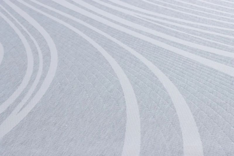 Su material exterior combina un TEJIDO DE PUNTO SUAVE AL TACTO y resistente: la parte superior en color blanco y los bordes en color gris, dando como resultado un diseño moderno y elegante.
