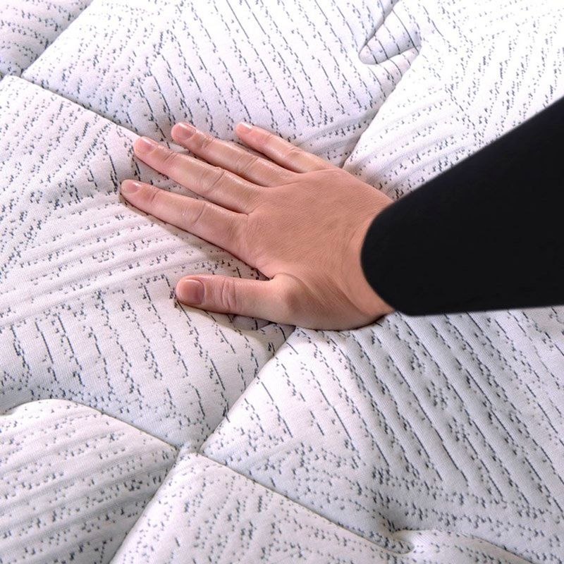El colchón está revestido con tejido de punto totalmente matelaseado, suave al tacto y con excelente ventilación. Los laterales en tejido jackard matelaseado refuerzan la estructura y suman estilo.