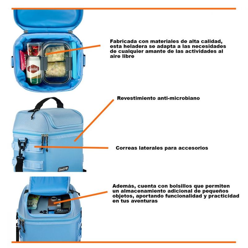 La Conservadora Bolso Térmico Coleman Pro es más que una heladera, es un compañero fiel para mantener tus bebidas frías y a mano, mejorando cada experiencia única en la naturaleza. Prepárate para disfrutar de tus momentos favoritos con la confianza que te brinda este producto.
