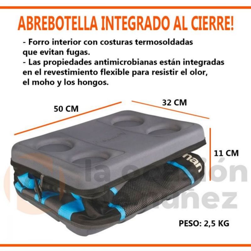 El cierre con cremallera con un abridor de botellas integrado garantiza que siempre esté listo para disfrutar de una bebida fría.