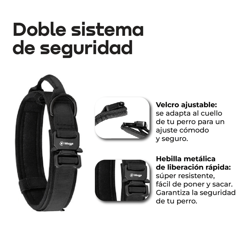 El collar táctico reforzado WAGGS MASC07 está pensado para quienes necesitan control real, seguridad y máxima resistencia en cada salida con su perro. Fabricado en nylon táctico 1000D, soporta entrenamientos intensos, caminatas exigentes y uso diario sin comprometer comodidad. Su interior acolchado protege el cuello y el pelaje, mientras que el doble sistema de seguridad con velcro reforzado y hebilla metálica de liberación rápida garantiza un ajuste firme y confiable. Incorpora asa táctica para control inmediato en situaciones de alta exigencia y zonas concurridas. Incluye correa extensible, porta AirTag y parches intercambiables, ofreciendo identificación, localización y personalización total. Un collar robusto, funcional y duradero, ideal para perros medianos y grandes que requieren rendimiento superior en cada aventura.