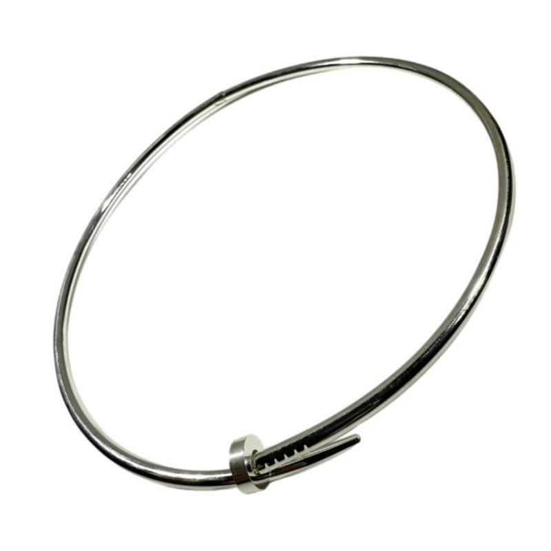 El Collar Clavo Acero de Divinos Abalorios está elaborado en acero quirúrgico brillante, con una forma rígida que abraza el cuello con elegancia y actitud. Su silueta inspirada en un clavo curvado le da un aire industrial, minimalista y sofisticado, ideal para quienes buscan un toque de rebeldía chic.