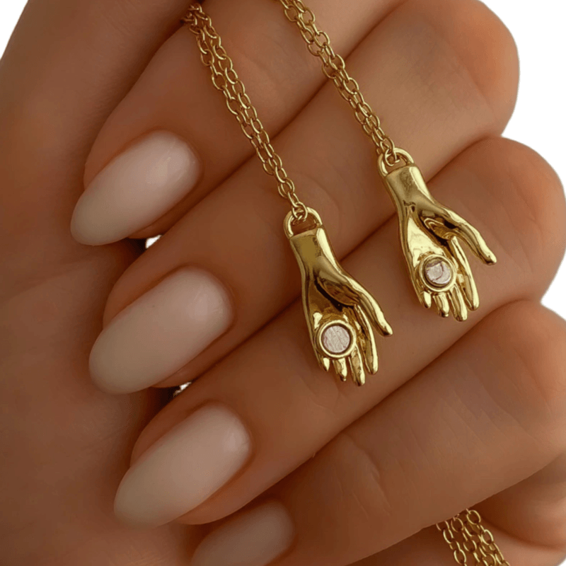 El collar Manos de acero friendly, son en realidad dos collares. Representa unión, protección y conexión emocional, convirtiéndose en una pieza con fuerte valor sentimental.