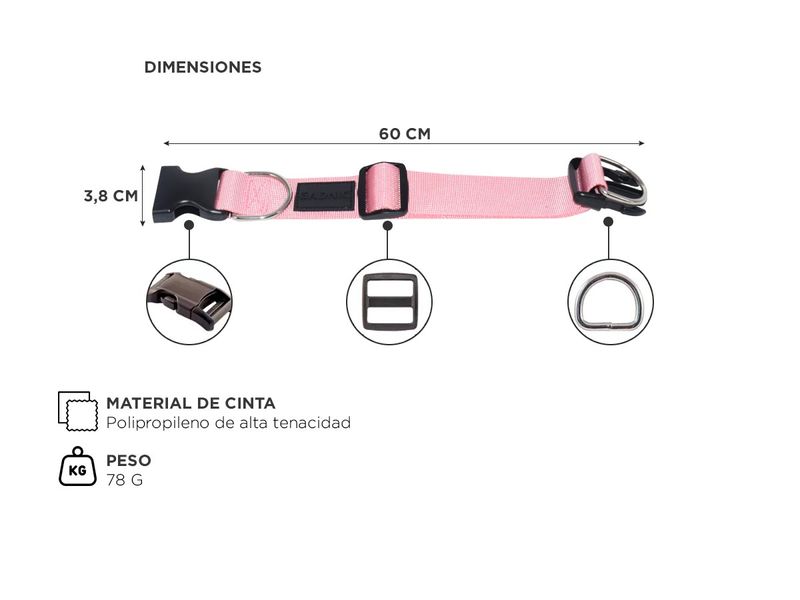 La hebilla de 40mm de resina de acetal, resistente y segura, es la clave para evitar tirones bruscos y garantizar la seguridad en cada paseo. Con su cinta ajustable y hebilla, poner el collar es sencillo, asegurando un ajuste perfecto para cada tamaño de cuello.