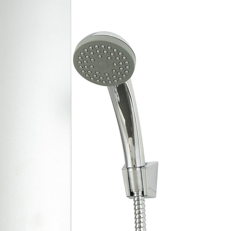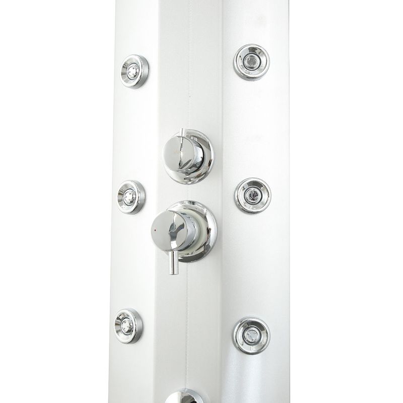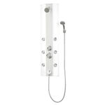 Columna de ducha de PVC con 6 jets masajeadores, grifería monocomando metálica, duchador manual y cabezal superior. Compacta, liviana y resistente, ideal para renovar el baño con buen caudal y múltiples funciones.