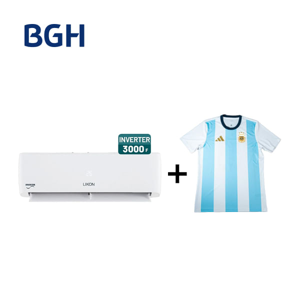 Combo Aire Acondicionado Frío/Calor BGH Likon Split Inverter 3010F LKSI35WCKW + Camiseta BGH adidas Talle L