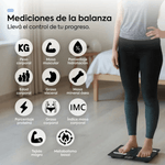 Balanza : • Funciones de salud avanzadas: Índice de masa corporal (IMC), porcentaje de grasa y agua corporal, masa muscular. ósea y metabolismo basal.
