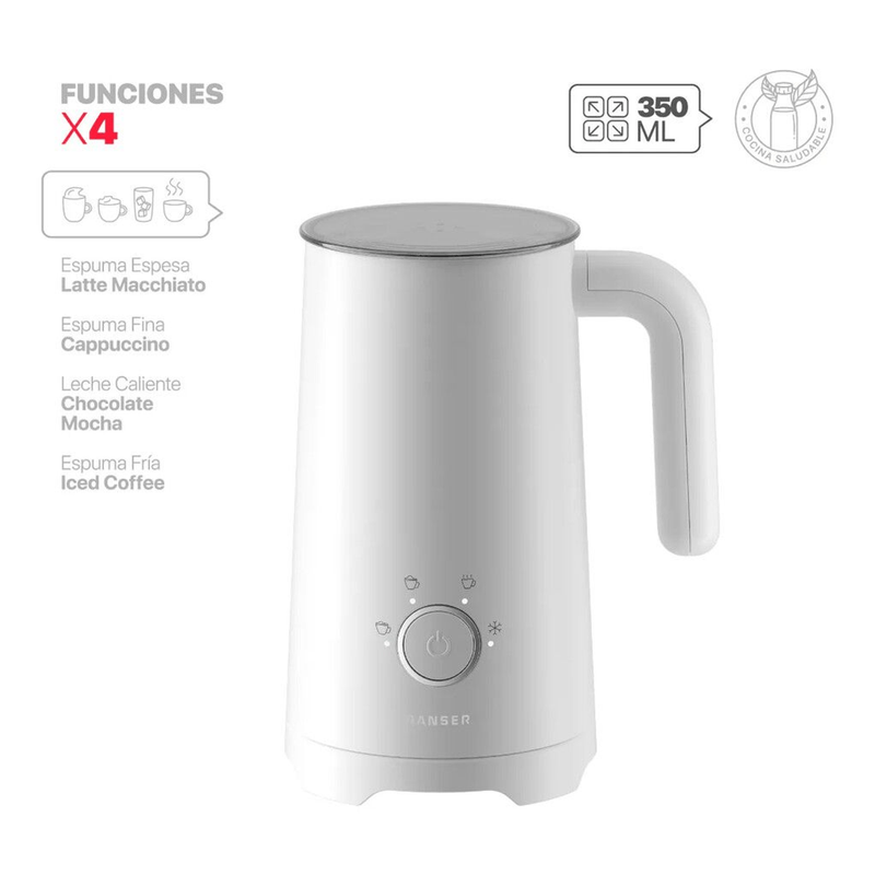 Espumador multifunción con 4 modos automáticos para bebidas calientes o frías.