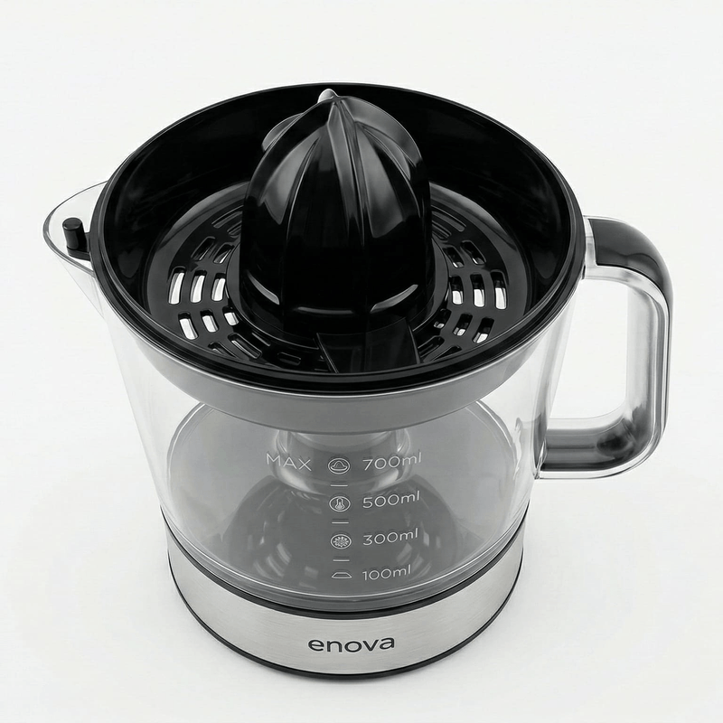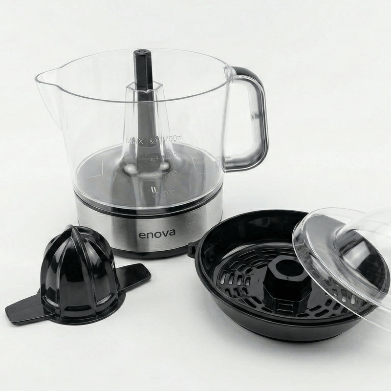 Empezá tus mañanas con todo listo en minutos. Este combo Enova combina practicidad, diseño y funcionalidad para que disfrutes un desayuno completo sin esfuerzo. Por un lado, el exprimidor eléctrico te permite preparar jugo natural recién exprimido de forma rápida y sencilla. Solo apoyás la fruta y listo: obtenés un jugo fresco, lleno de sabor y vitaminas, ideal para arrancar el día con energía. Por otro, la cafetera de filtro es perfecta para preparar varias tazas de café caliente y aromático para compartir en casa o en la oficina. Su diseño clásico y elegante en color negro combina con cualquier cocina, mientras que su capacidad es ideal tanto para el uso diario como para reuniones.