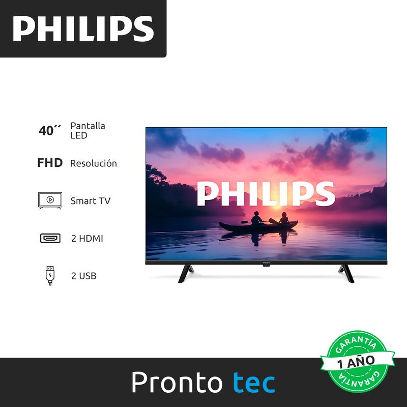 Pantalla LED Full HD de 40” con HDR para colores más vivos y detalles más nítidos.
