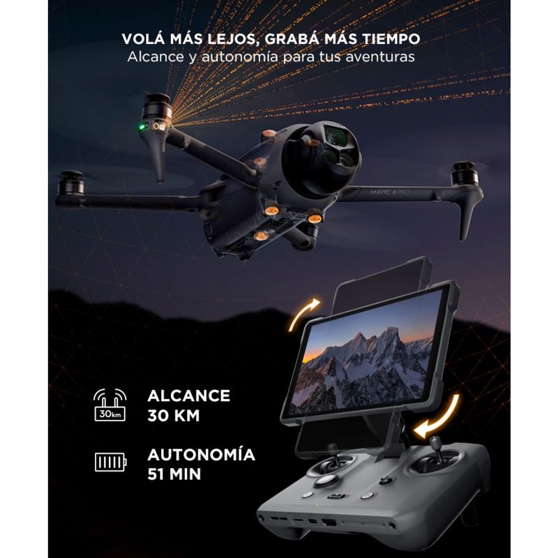 Incluido en el paquete, el control DJI RC Pro 2 incorpora una pantalla Mini-LED de 7" con 2000 nits de brillo, ofreciendo visibilidad superior incluso bajo luz solar directa. Su interfaz fluida y su sistema de transmisión DJI O4+ aseguran una experiencia de pilotaje precisa, rápida y confiable.