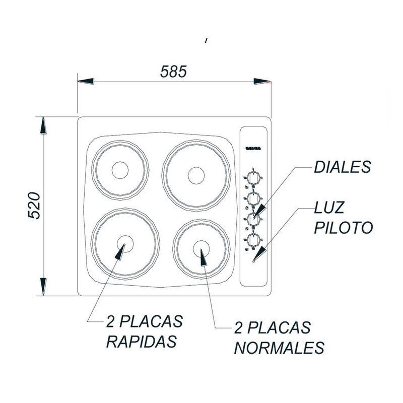 ANAFE ELECTRICO DOMEC AEXG 4 HORNALLAS ACERO INOXIDABLE