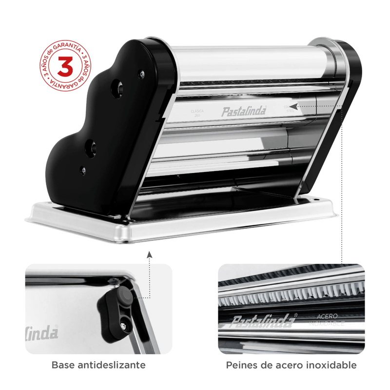 Es aconsejable dejar reposar la pasta luego del amasado y previo al paso por la Pastalinda Clásica, y también secar / airear la pasta antes de su cocción. Se recomienda dejar reposar 30/40min la pasta antes de su cocción.