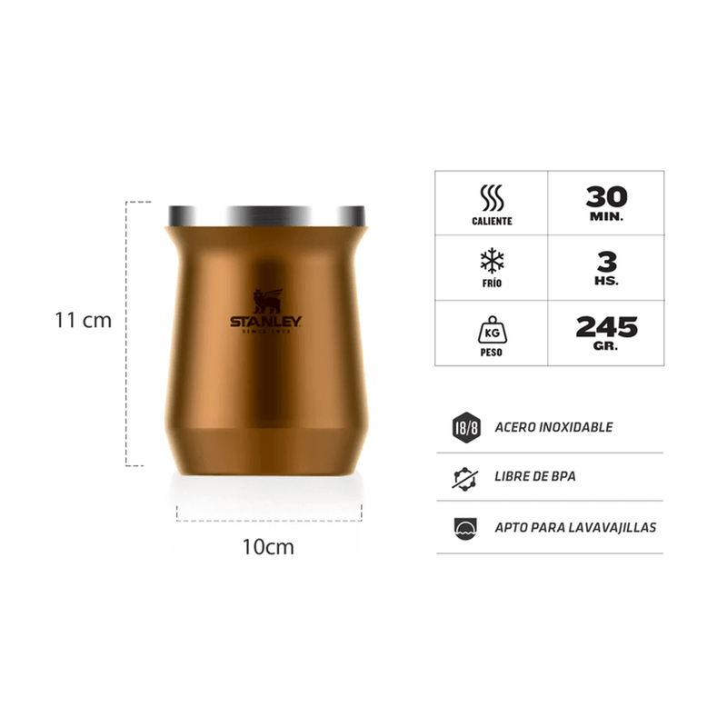 Con tecnología exclusiva, creamos el tapón de altísima precisión para el servicio perfecto, con flujo continuo de agua y en el lugar correcto. El tapón respeta una pendiente ideal para verter el agua directamente en el punto que desees. La tapa de acero inoxidable se convierte en mate. Solo o acompañado, con el Mate System Stanley tienes la capacidad de transformar a tu mate en un momento legendario.