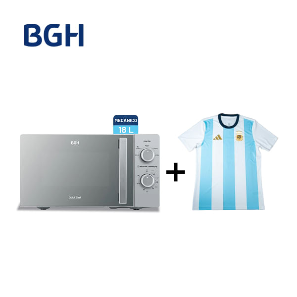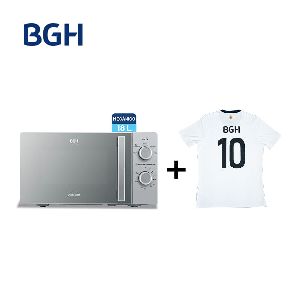 Combo Microondas BGH Mecánico 18L Silver Espejado B118MS25 + Camiseta BGH adidas Talle M