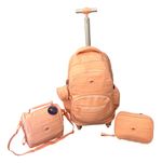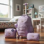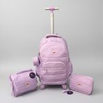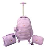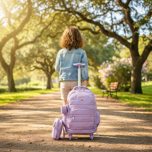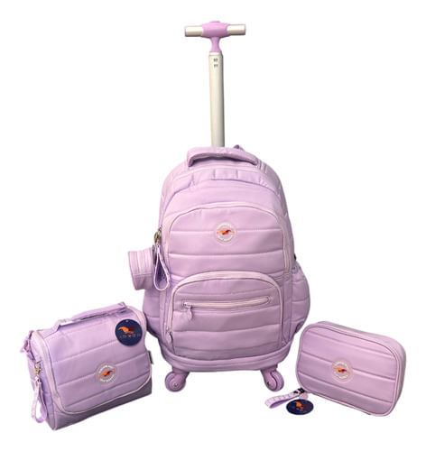 Este combo incluye una cartuchera y una lunchera, proporcionando un conjunto completo para las actividades escolares. Además, cuenta con un compartimento especial para notebook, asegurando que los dispositivos electrónicos estén protegidos y organizados. Las ruedas de la mochila permiten un deslizamiento suave, ideal para los pasillos de la escuela o en el camino hacia casa.