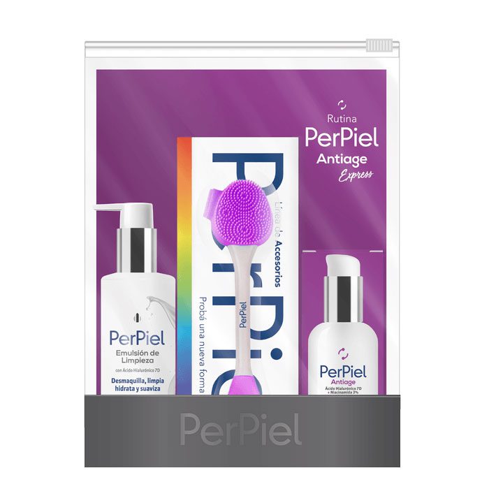 COMBO RUTINA PERPIEL ANTIEDAD EXPRESS EMULSION DE LIMPIEZA 200 ML +FACIAL AE 80 ML +MASAJEADOR DUAL FACIAL PERPIEL 1,00 SET ( ST )
